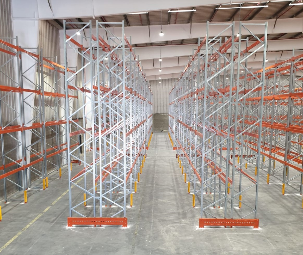 Стелажната система „DRIVE IN“ е идеално решение за съхранение на хомогенни продукти.